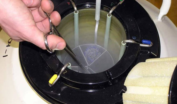 詳細(xì)的精液清單應(yīng)易于取用,以便可以快速定位并從儲(chǔ)罐中取出吸管,以避免暴露在環(huán)境溫度下。從液氮罐中取出吸管時(shí),技術(shù)人員必須將罐,甘蔗和未使用的精液吸管在罐的頸部保持盡可能低的高度。zui佳管理方法是將所有未使用的吸管保持在儲(chǔ)罐頸部的霜凍線(xiàn)以下。